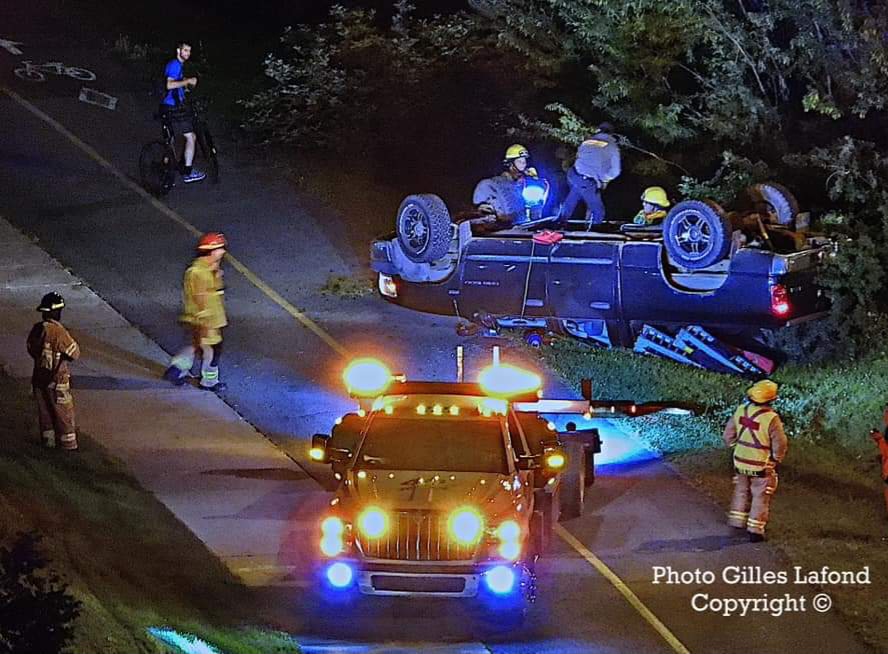 Les services d'urgence sont intervenus vers 00 h 40 pour un accident avec capotage sur le boulevard Lebourgneuf à l'intersection de Robert Bourassa à Québec.