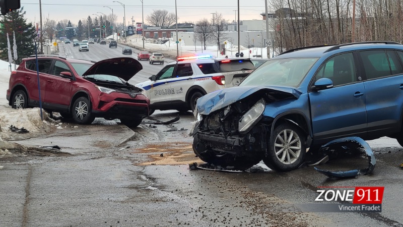 À peine quelques minutes plus-tard, vers 10 h 30, un appel d’accident est logé au 911 à l’intersection de la rue Anick et du boul. Raymond. Un des véhicules serait le RAV4 recherché.