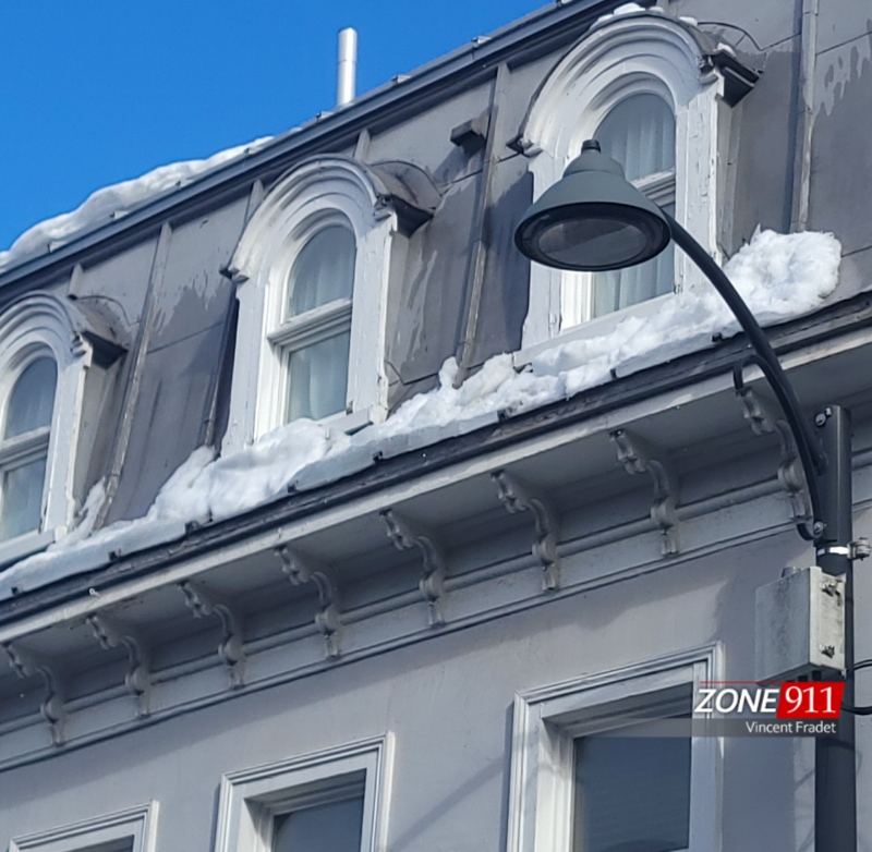 Donc, si vous allez dans le secteur du quartier Montcalm ou du Vieux-Québec, portez une attention aux toits et soyez prudent, comme vous pouvez le constater sur les images, les morceaux de glace sont parfois de grande dimension et très épais, il pourraient causer des blessures sérieuses.