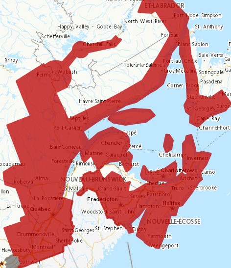 Note - Les avertissements et les prévisions météorologiques proviennent d'Environnement Canada. Elles sont sujets à changement à tout moment, veuillez vous référer à Environnement Canada. Pour plus d'informations et de précisions, ainsi que pour le suivi des prévisions et avis météorologiques, consulter Environnement Canada ainsi que Météomédia.
