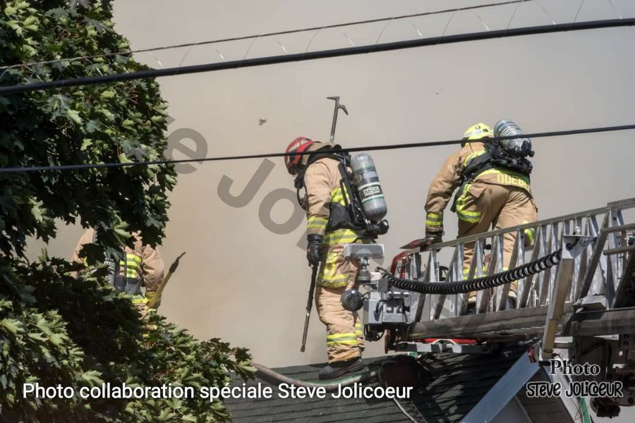 Une deuxième alarme a été demandée par un officier, car «le feu est éclaté au rez-de-chaussée, au 2e étage et dans l’entretoit». Puis des flammes sortaient par une fenêtre de la façade.