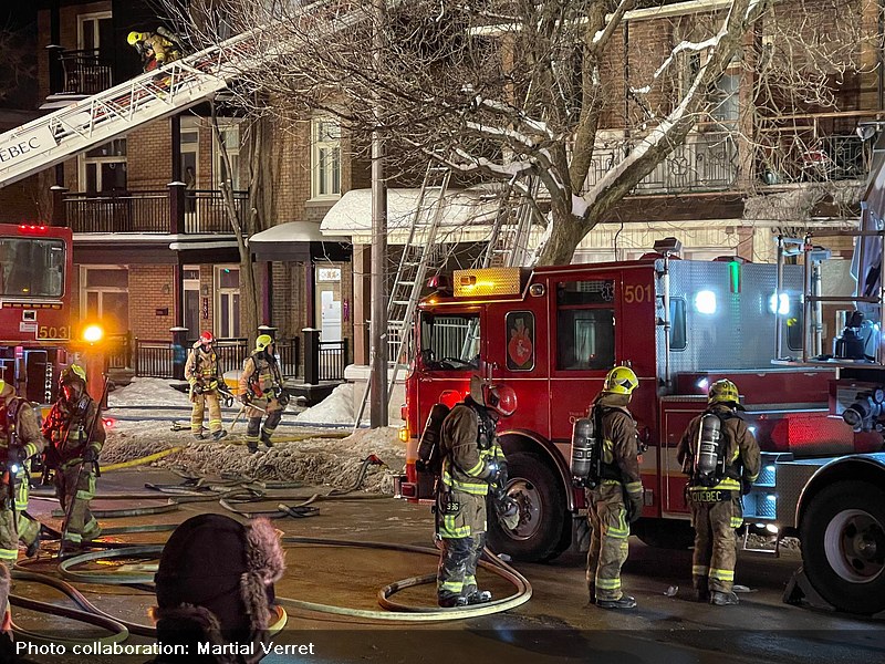 Les pompiers ont combattu en début de soirée un incendie important dans un immeuble de 13 logements de 3 étages au 472 chemin Sainte-Foy.