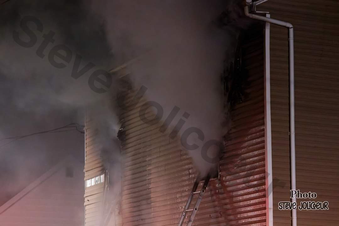 Le bâtiment serait une perte totale et une excavatrice pourrait être envisagée pour aider les pompiers à atteindre les divers foyers d’incendie.