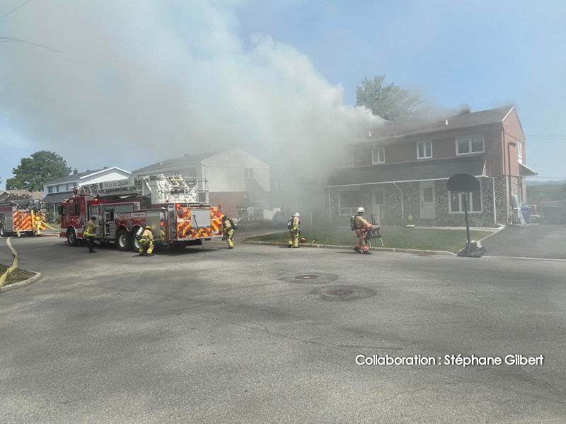 Le feu se propage à la toiture de la résidence, bâtiment de type jumelé de deux étages.
