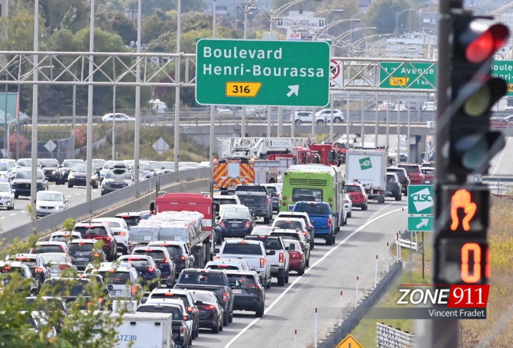 Les pompiers de Québec sont en intervention présentement sur la rue du Cardinal Maurice Roy, situé près du stade Canac, une rue qui longe l'autoroute Laurentienne.