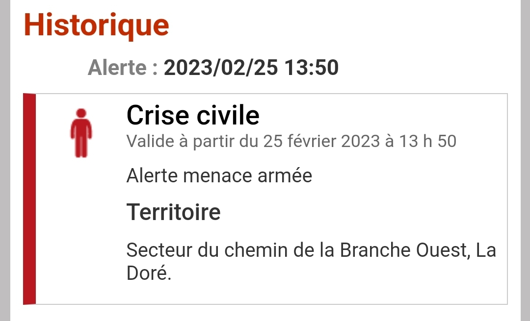 MENACE IMMINENTE à La Doré - ANNULÉE / TERMINÉE
