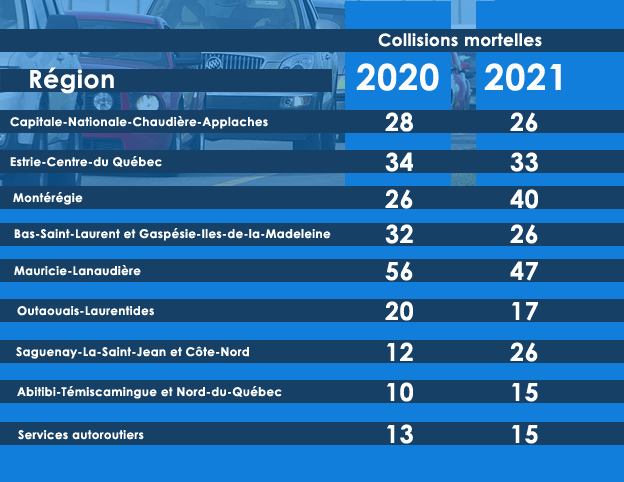 Malheureusement, chaque année, des personnes perdent la vie lors de collisions routières sur le territoire desservi par la Sûreté du Québec.