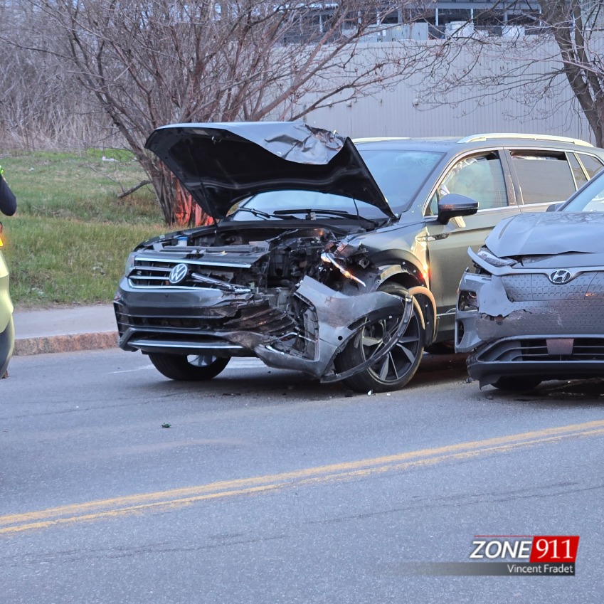Deux équipes de paramédics ont été dépêchées sur les lieux afin d’évaluer l’état de deux personnes impliquées. Les pompiers sont également intervenus afin de sécuriser la scène de l’accident.