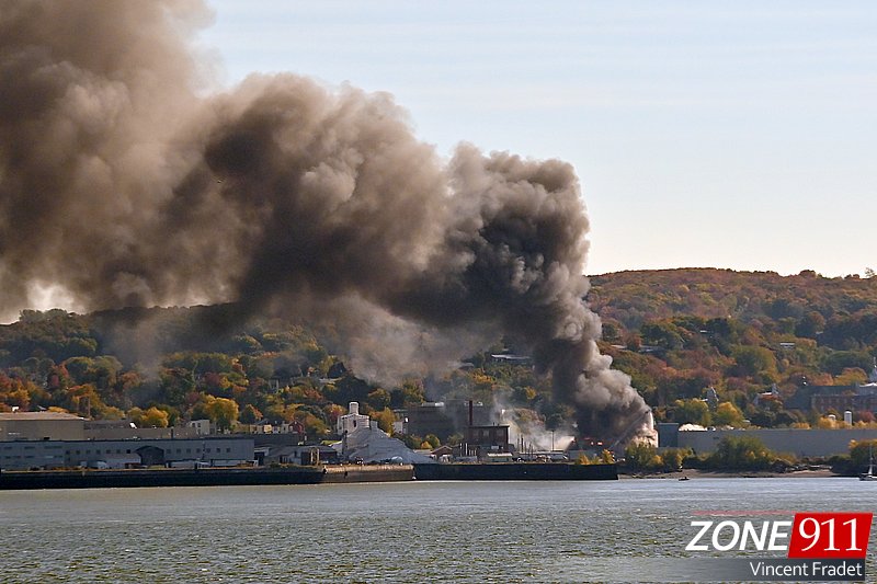 Depuis 11h environ, un important incendie fait rage dans un bâtiment de 100x250 sur le chantier maritime de la Davie.